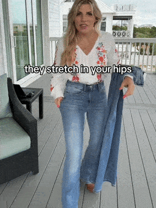 Тези дънки са разтегливи!!! Толкова много разтягане... те се чувстват толкова добре. И не се разтягат. Веднага се връщат към формата си и поддържат дупето ви във форма! Сериозно, тези дънки ще ви поразят с прилягането си!